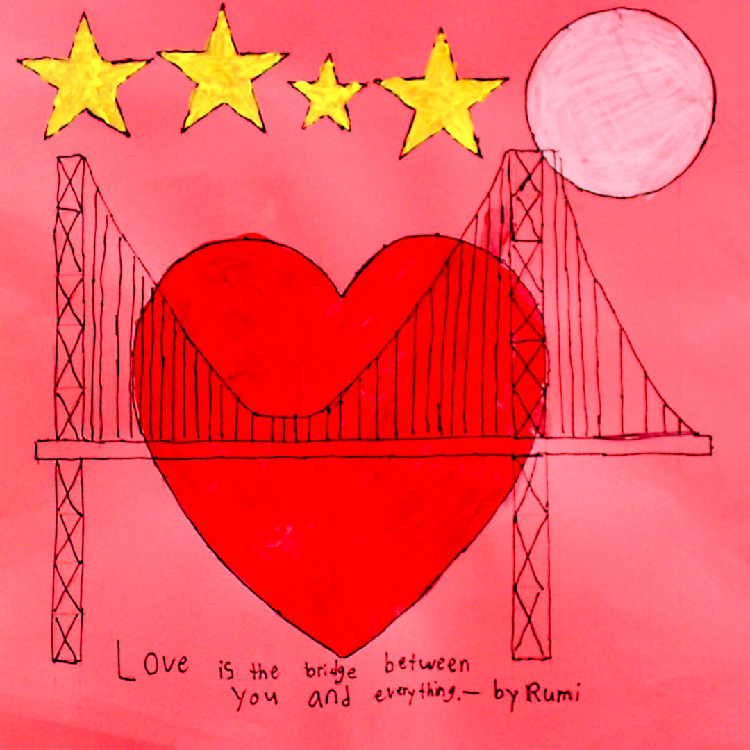 I drew and colored the bridge because Rumi mentions how we need a bridge to love each other.