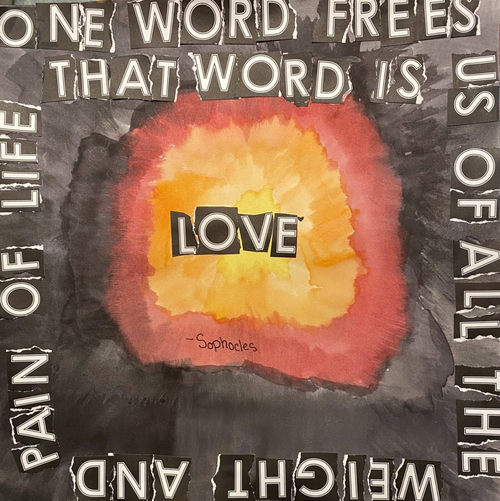 I was inspired by Sophocles’ quote “One word frees us of all the weight and pain of life. That word is LOVE.” When we show love for each other we make each other’s lives better by showing empathy for what others are going through.