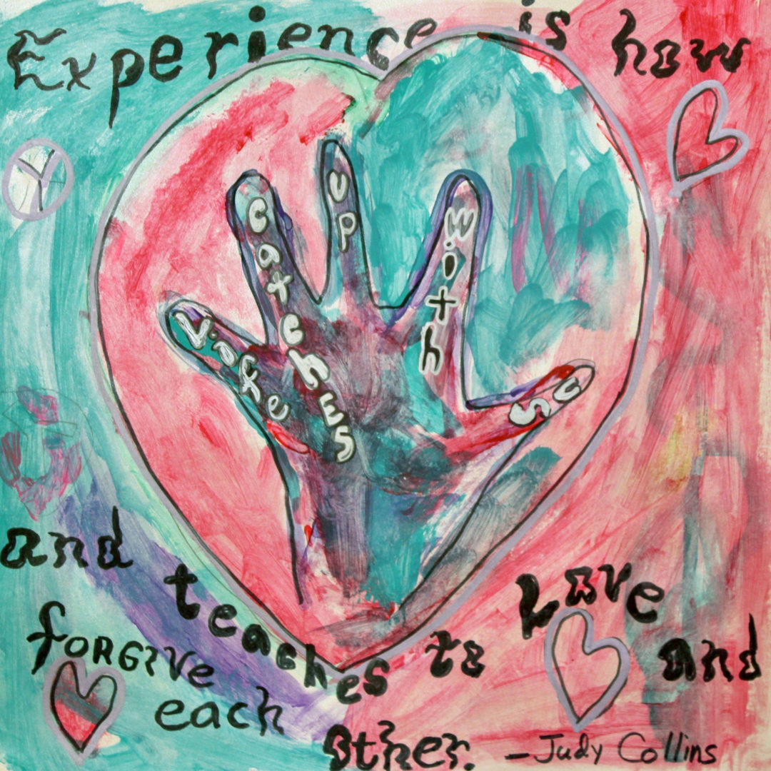 I drew my hand, and heart to represent happiness, love, and being helpful. I also blended the colors to represent us loving each other.