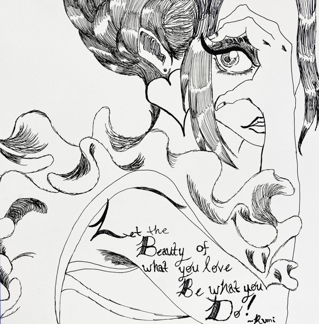 I created this pen and ink drawing to illustrate the quote “Let the beauty of what you love, be what you do!” by Rumi